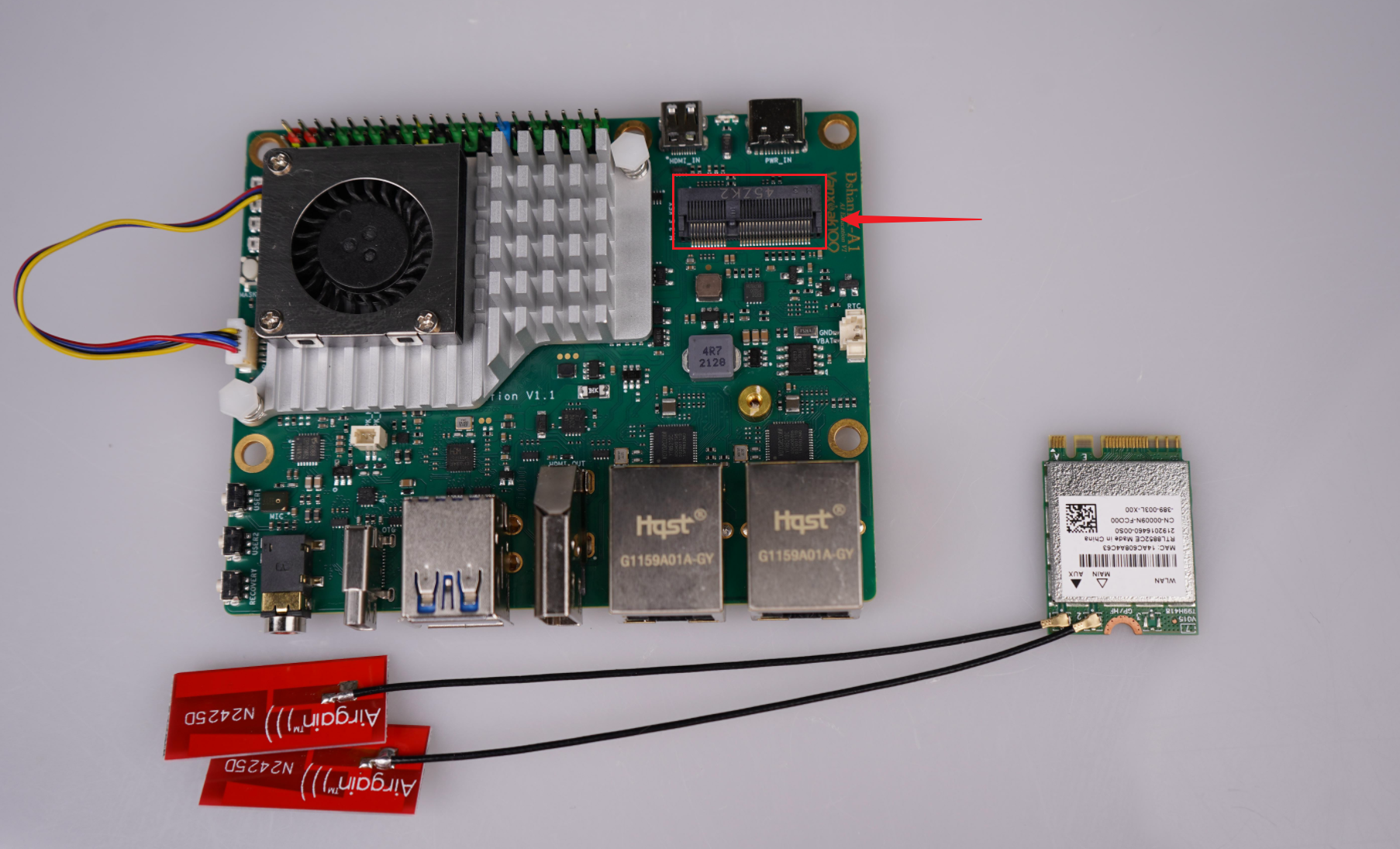 开发板背面预留了 M.2 Key-E 接口,支持安装 PCIe WiFi 6 模块。