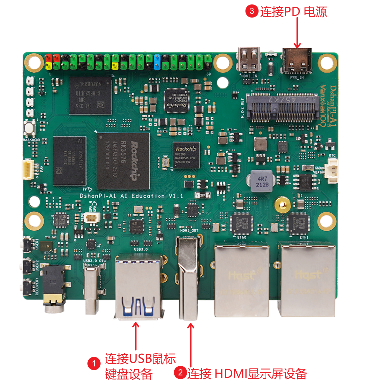 1. 将 USB 键盘和鼠标分别插入开发板的 USB 接口(支持 USB 2.0/3.0)。